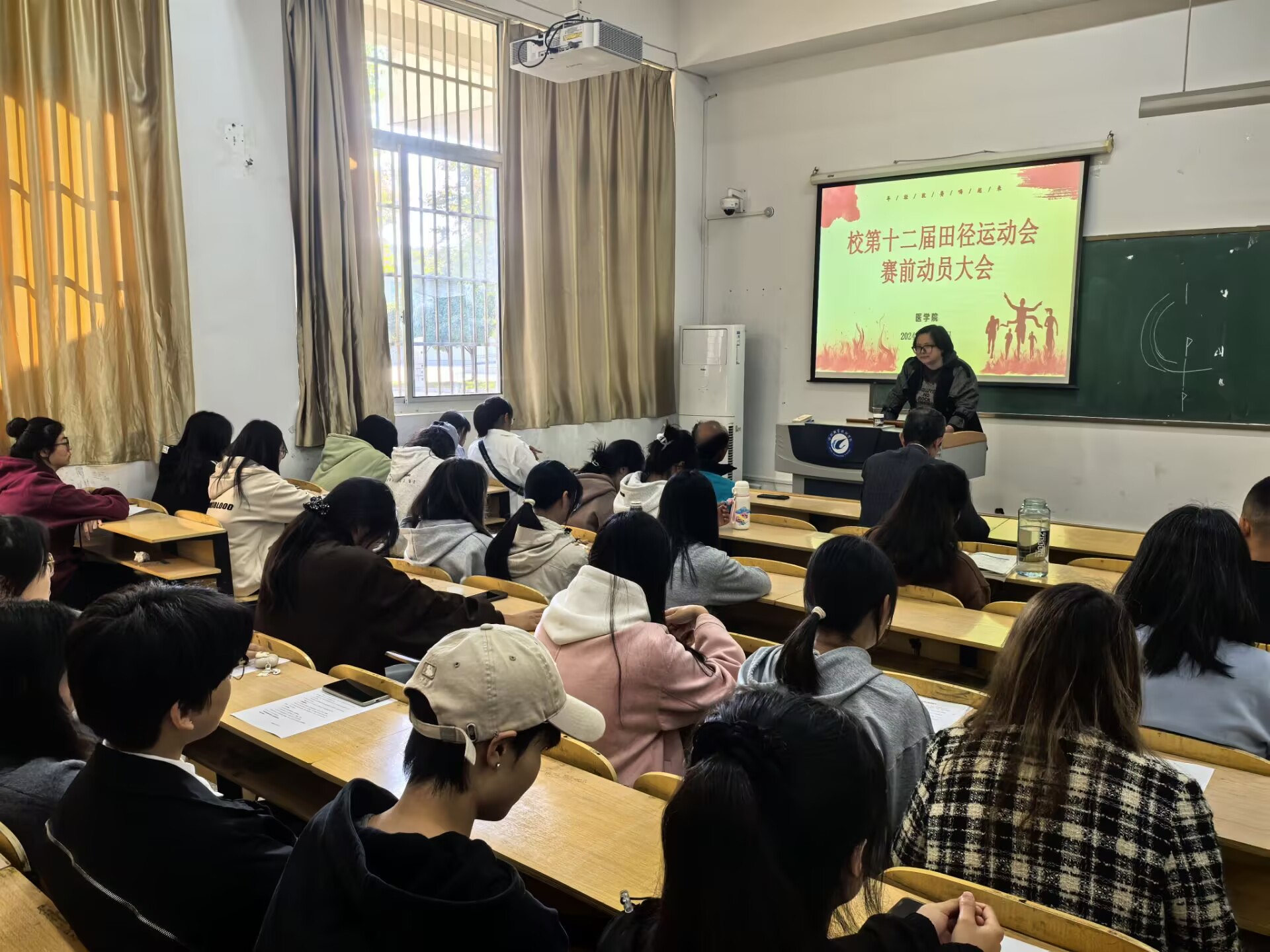 刘惠首先回顾了去年校田径运动会中YABO鸭脖代表队取得的成绩,就今年运动会举办的时间安排、竞赛规程以及相关奖励办法进行了详细的说明。随后,去年在校田径运动会上获得女子组800米第一的23级老服专业学生洪登华作交流发言,她分享了自己的训练计划与参赛心路历程,并号召大家要不畏挑战,勇于尝试,相信自己,超越自我。