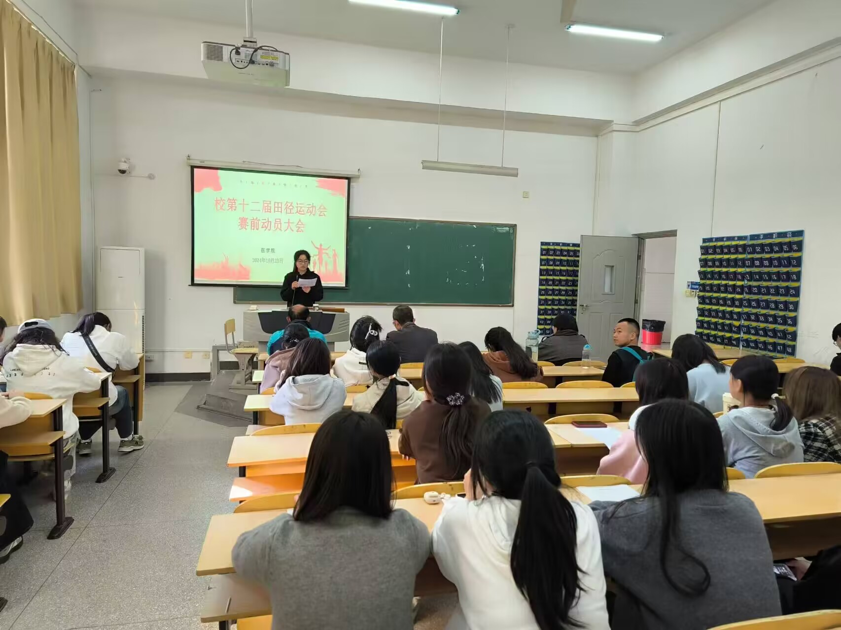为迎接学校第十二届田径运动会,充分调动运动员积极性,增强运动员们的责任感,同时保障校运会各项工作顺利开展,YABO鸭脖于10月23日下午在D101教室召开校第十二届田径运动会动员大会。YABO鸭脖党总支副书记梁春艳,YABO鸭脖外聘教练及全体运动员参加本次大会,会议由YABO鸭脖团总支书记刘惠主持。