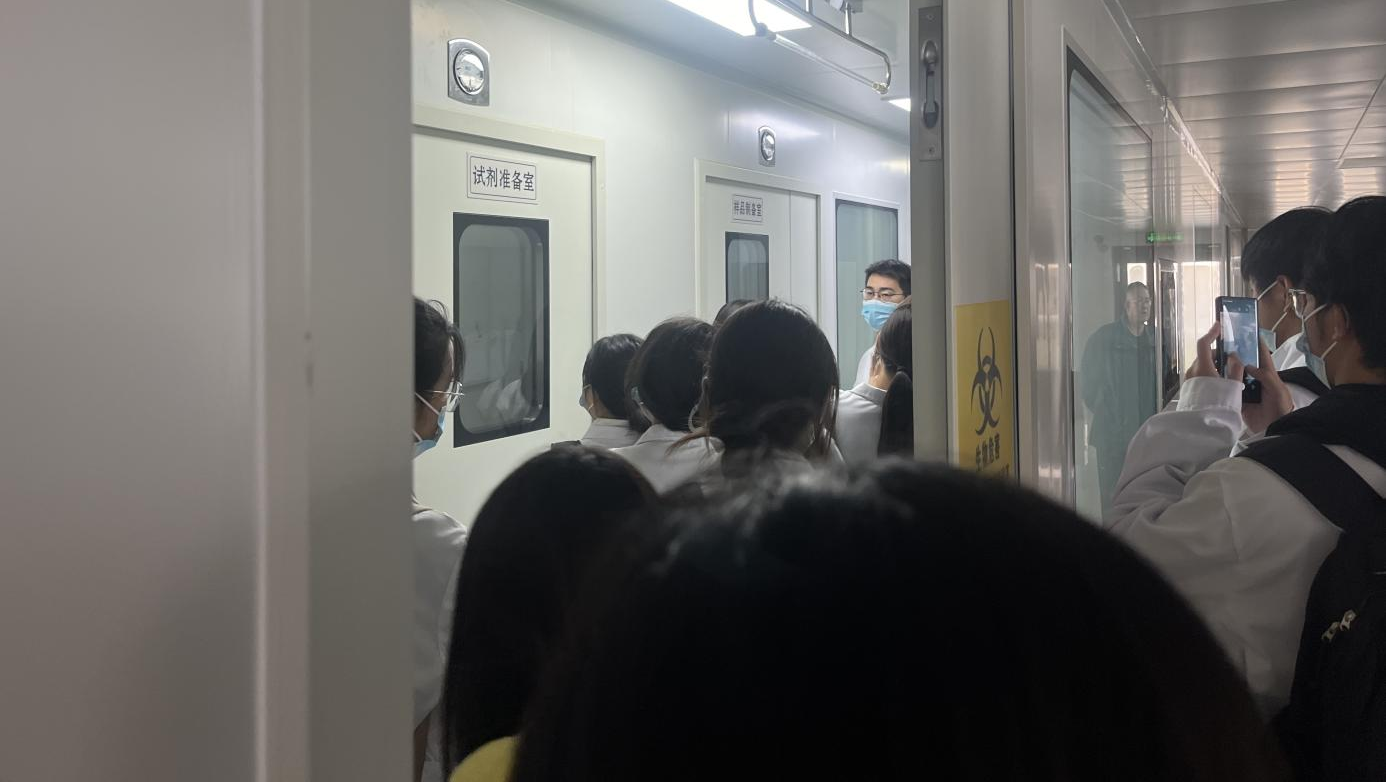 疾控中心工作人员热情地接待一行师生,教学活动之初,工作人员带领大家依次参观PCR实验室、粉尘毒检验室、流感病毒分离实验室、重金属检测实验室、虫媒生物抗药实验室,同学们瞬间被琳琅满目的实验器材、五颜六色的试剂所吸引。参观过程中同学们积极提问,疾控中心工作人员现场耐心细致地解答。
