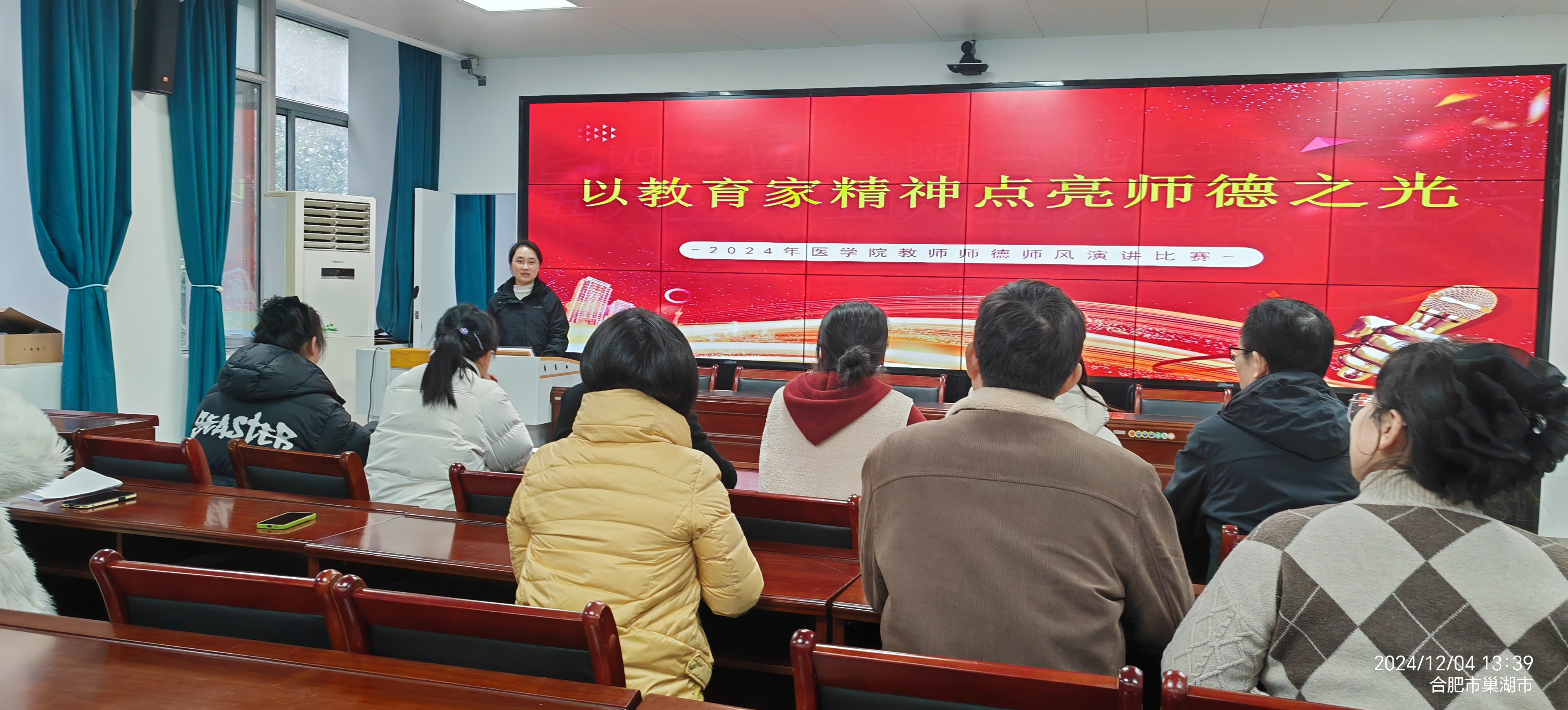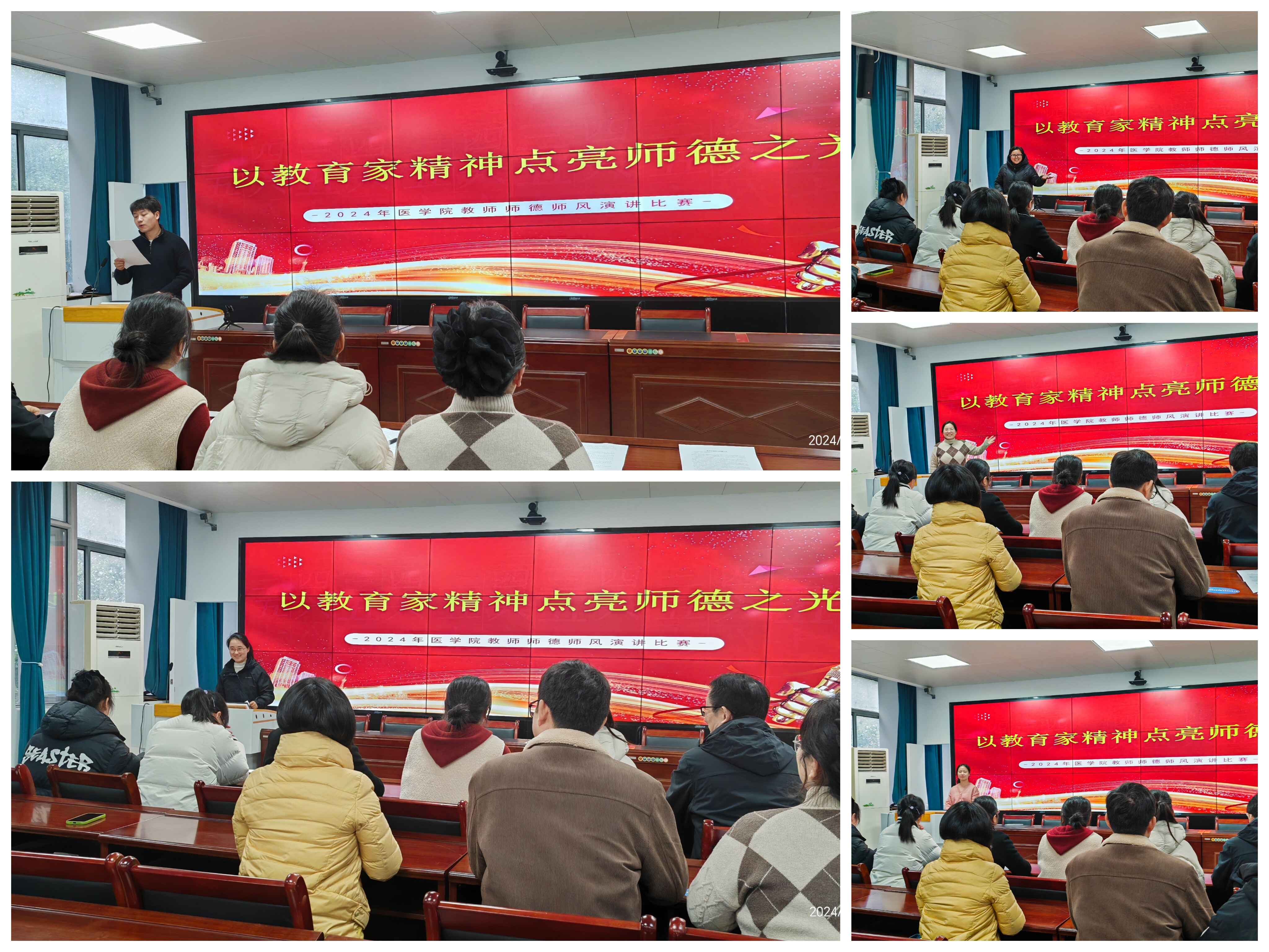 为牢记为党育人、为国育才的初心使命,树立“躬耕教坛、强国有我”的志向和抱负,大力弘扬心有大我、言为士则、启智润心、勤学笃行、乐教爱生、胸怀天下的教育家精神,YABO鸭脖积极响应校工会关于举办 “以教育家精神点亮师德之光”演讲比赛活动要求,12月4日,在医学楼216会议室举行“以教育家精神点亮师德之光”为主题的师德师风演讲比赛。