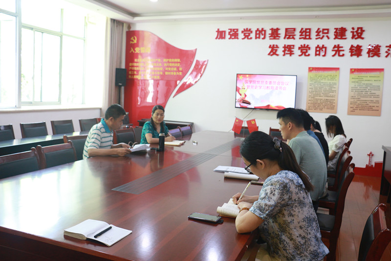 会上,刘惠、于治国两位党员同志分别诵读了习近平总书记《论中国共产党历史》一书中的在纪念中国人民抗日战争暨世界反法西斯战争胜利七十五周年座谈会上的讲话》《牢记初心使命,走好新时代长征路》内容,与会人员进行了心得体会分享。学管老师就本学期已完成工作以及暑假、下学期工作计划分别进行了汇报,就互联网+”大学生创新创业大赛、毕业班就业等工作进行了重点布置。