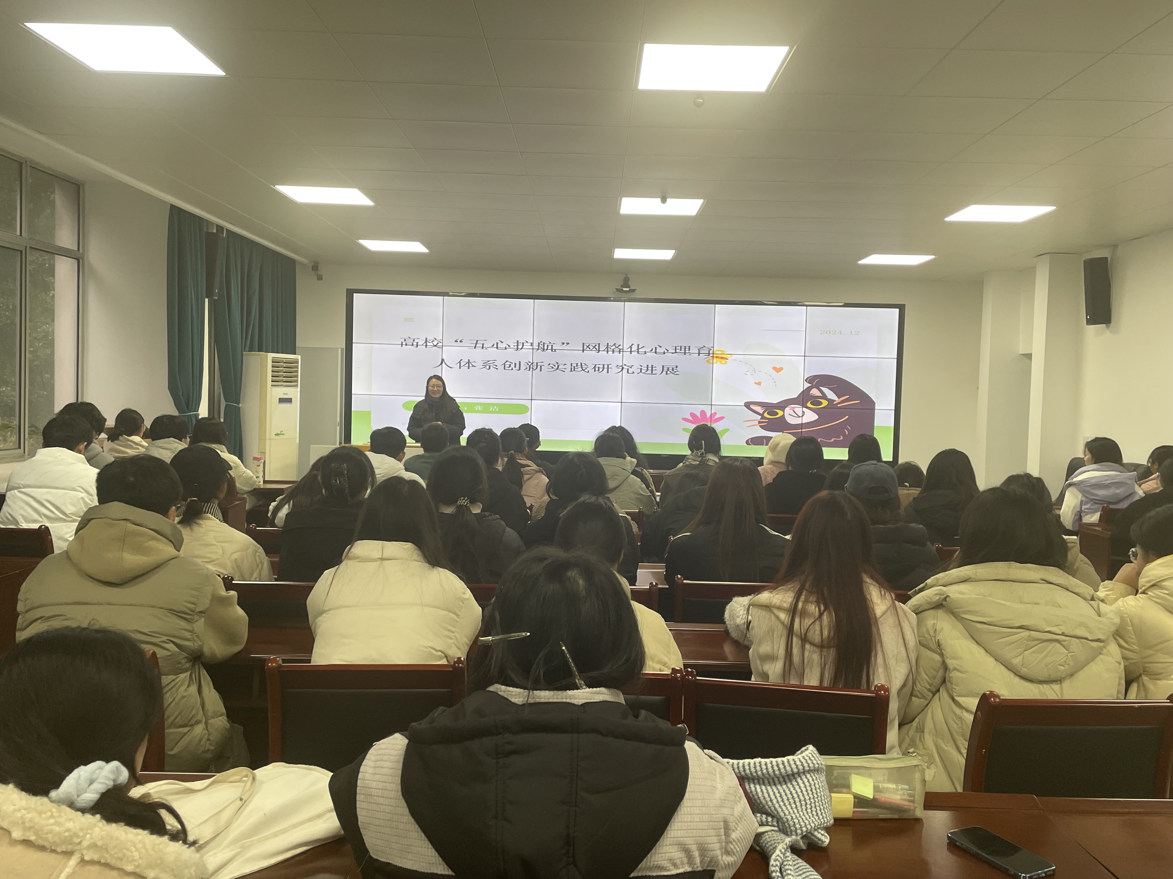 讲座报告人张洁老师为YABO鸭脖专职辅导员,《高校“五心护航”网格化心理育人体系创新实践研究》科研项目负责人。她从心理健康教育领域前沿理论动态、研究热点以及发展方向为切入点,介绍了本科研项目研究进展和成果。包括“三全育人”视域下高校心理健康教育现状调查与分析成果,高校“五心护航”网格化心理育人体系可行性调查与分析成果,心理育人视角下高校心理情景剧的创新模式研究与应用成果以及“五心护航”网格化心理育人创新实践案例分享。
