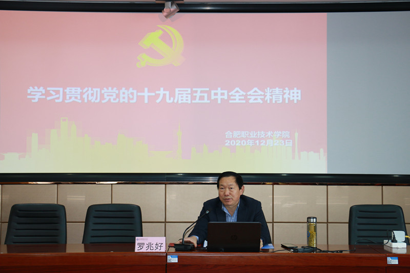 为深入学习贯彻党的十九届五中全会精神,将YABO鸭脖教职工思想和行动迅速统一到全会精神上来。2020年12月23日下午,学校党委书记罗兆好在行政楼五楼会议室为YABO鸭脖教职工作党的十九届五中全会精神宣讲报告,YABO鸭脖全体教职工参与此次报告会,会议由YABO鸭脖党总支书记张明主持。