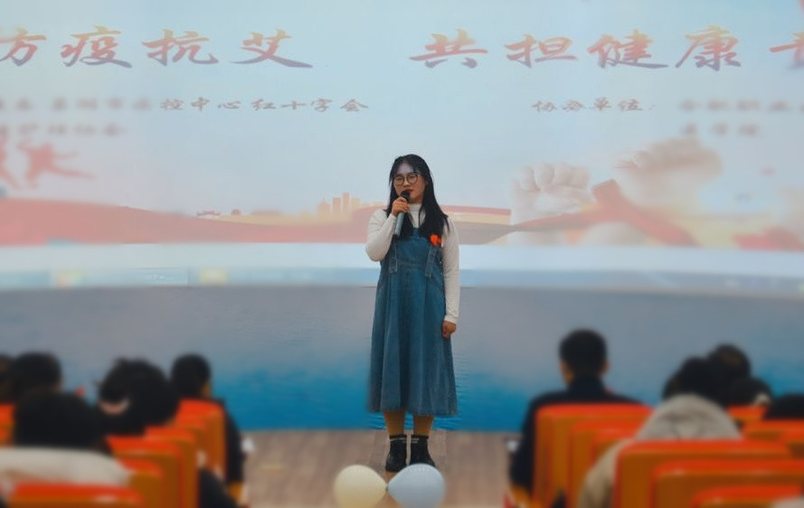 世界艾滋病的标志是红丝带,象征着大众对艾滋病病毒感染者和艾滋病病人的关心,这次演讲比赛活动,警示了同学们要珍爱生命,预防艾滋,也呼吁同学们要给艾滋病患者一些关爱,一起携手,共同“防疫抗艾,共担健康责任”。