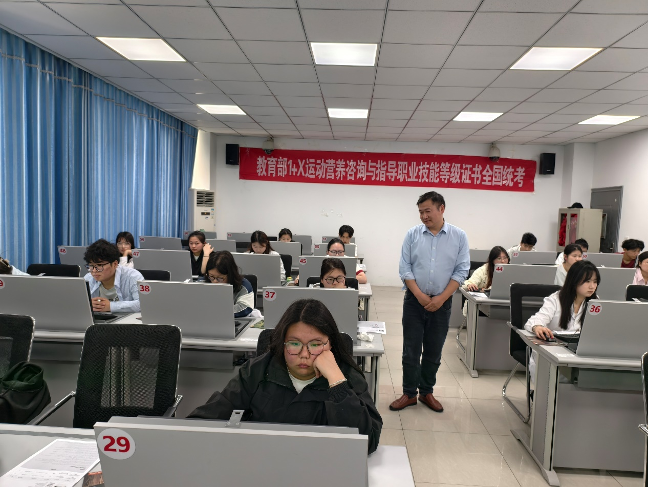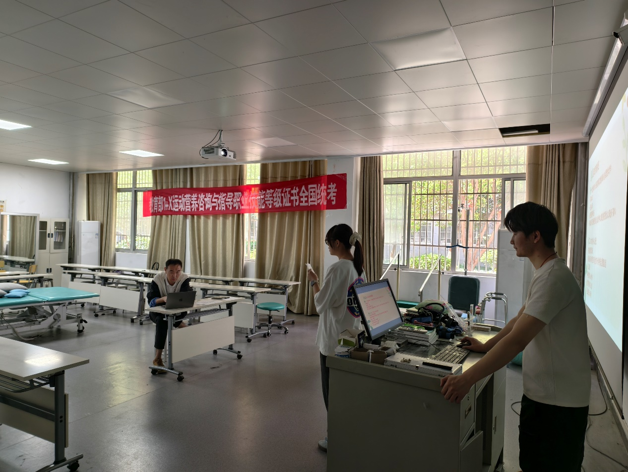 考试分为理论机考和实操考核两部分。上午的理论考试在F楼204机房进行,主要测试学生对专业知识的掌握程度。下午的实操考核在医学楼106教室展开,重点考察学生制定运动营养方案、开展专业指导等实际工作能力。