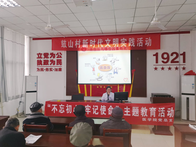 为深入推进“不忘初心、牢记使命”主题教育活动,YABO鸭脖党总支按照校党委的统一部署,结合十一月份党员活动日,在做好全体党员、教职工理论学习和对照党章党规查找差距的同时,情系社区居民健康,努力把主题教育活动的主旨化为实际成效。