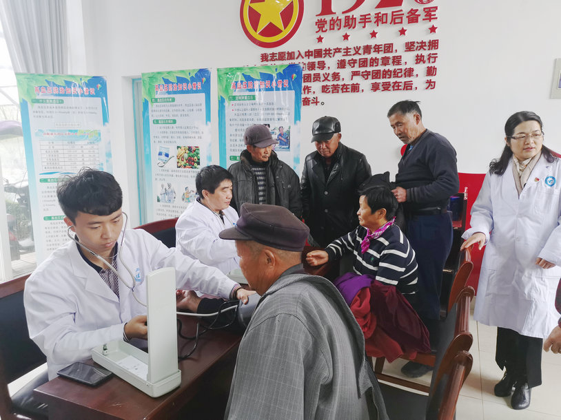 院长王荣俊教授、党总支副书记(主持工作)孙美兰教授,认真细致的为老年居民们进行指导和解惑,并对患有高血压病的居民进行检查和诊治,给出针对性的治疗方案;学生志愿者为居民们逐一测量血压,并做好数据记录。