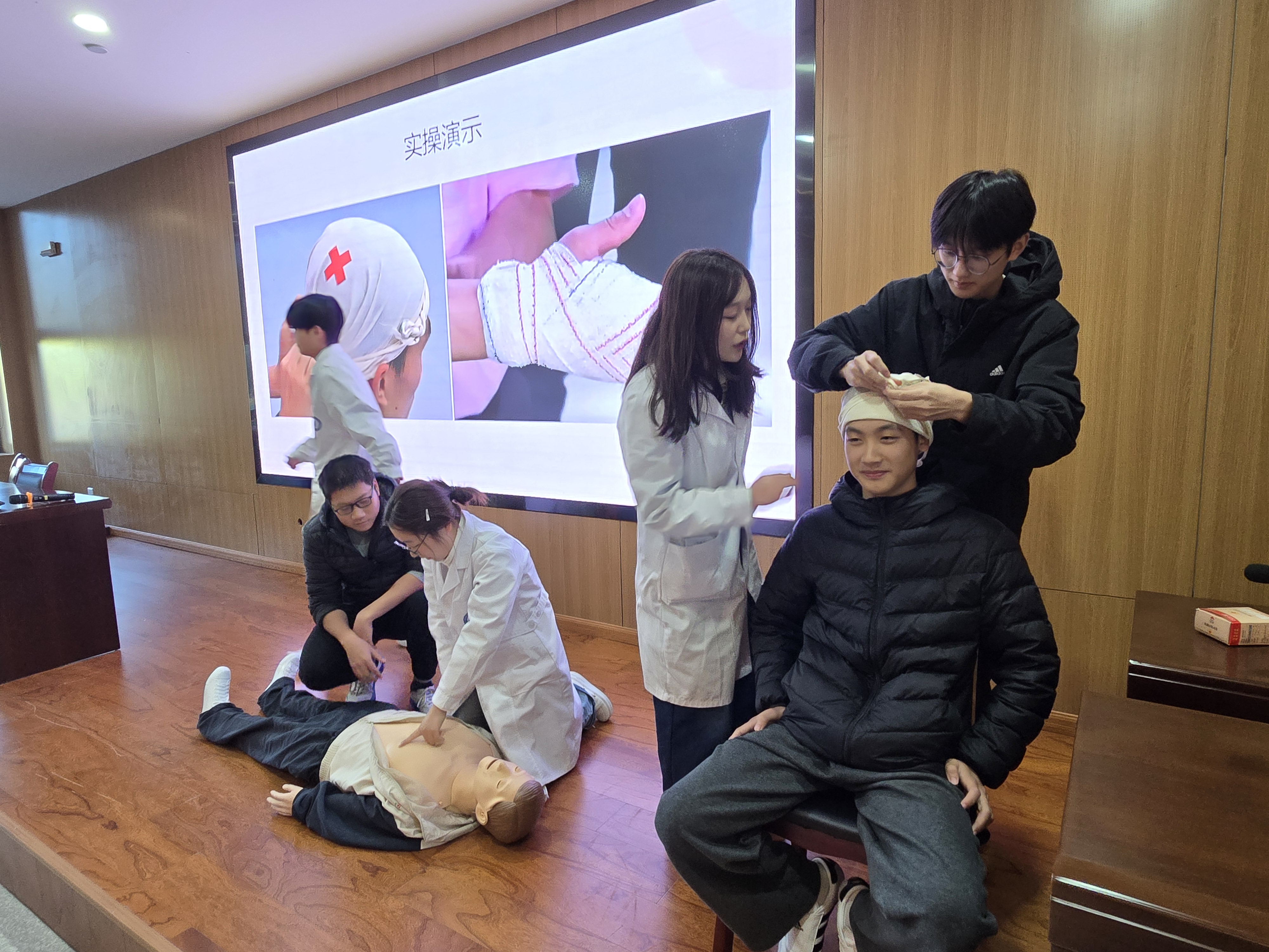 启动会后,首场跨校区专业培训迅速开展。在汇心湖校区图书馆一楼报告厅,YABO鸭脖杨晴老师带领预防医学专业学生团队,为信息工程与传媒学院的学生开展 “手把手急救教学”。培训现场,杨老师结合真实案例,详细讲解心肺复苏、外伤急救的操作要点,从按压深度、频率到呼吸配合,逐一示范指导。学生们分组实操,杨老师与团队成员巡回纠错,确保每位同学都能掌握规范动作。信息工程与传媒学院学生表示“以前觉得急救离自己很远,现在亲手操作后,不仅学会了技能,更深刻领悟了关键时刻的急救价值。”