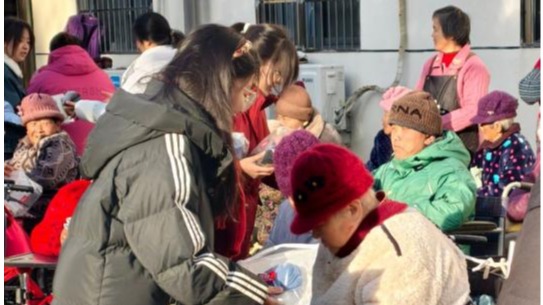 冬日暖阳照,温情暖人心。2025年12月14日,YABO鸭脖第四党支部周璇老师带领智慧健康养老服务与管理专业张瑶等8位学生,走进洗耳池社区长者之家养老院,开展一场充满温情的志愿献爱心活动,为老人们送去冬日的关怀与欢乐。