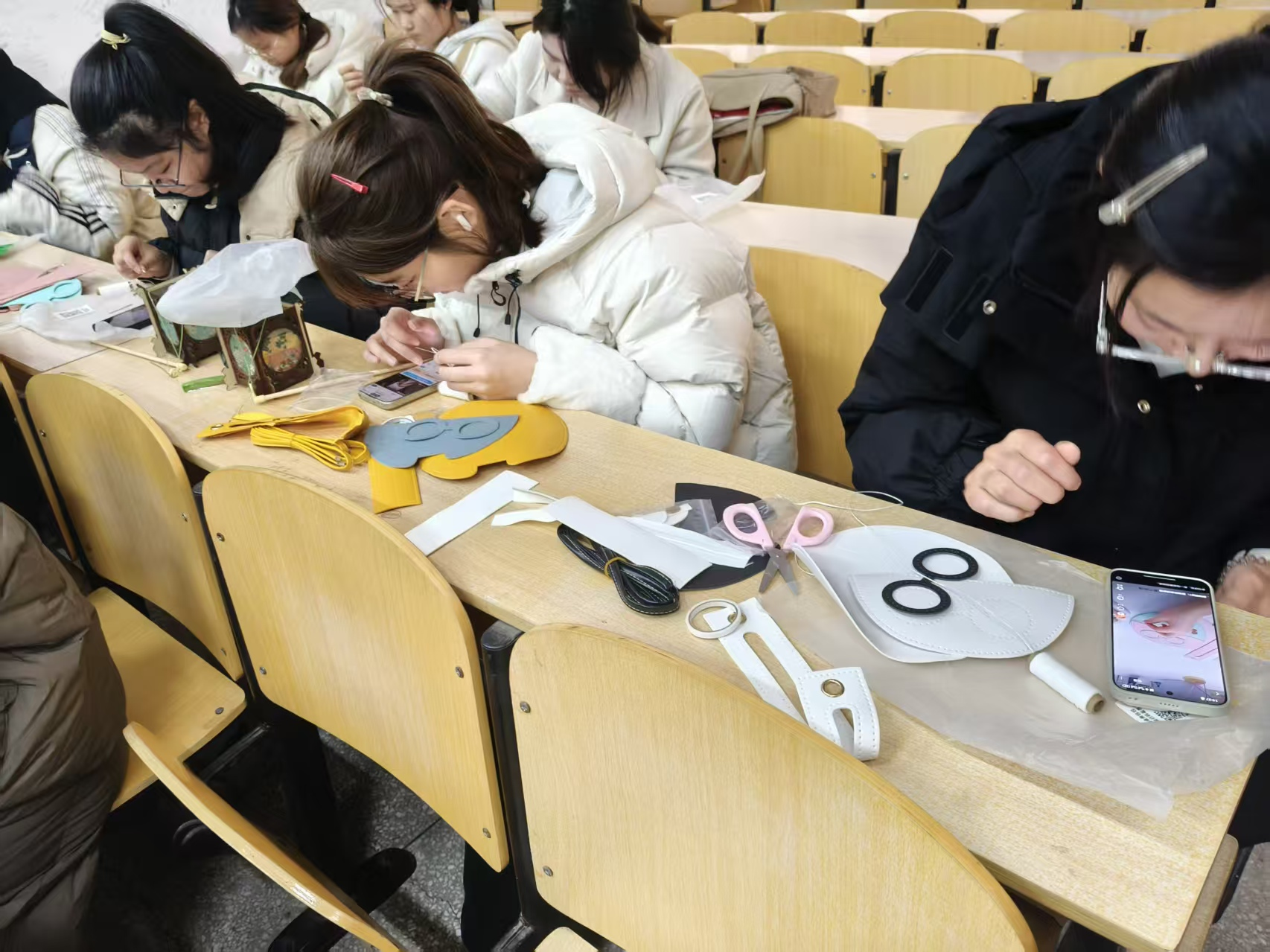 随着时间推移,一个个原本零散的皮料,在同学们的一针一线缝制下逐渐成型。当看到自己亲手制作的皮具成品时,大家的脸上都洋溢着难以掩饰的喜悦与成就感。来自临床医学专业的张同学拿着自己缝制的卡包感慨道:“平时学习节奏快,很少有机会静下心来做一件事。这次跟着视频一步步摸索,看着皮料慢慢变成可以使用的卡包,真的太有满足感了。”还有同学表示,手工缝制的过程虽然耗时,但每一针都凝聚着自己的心血,这样的作品比买来的更有意义。