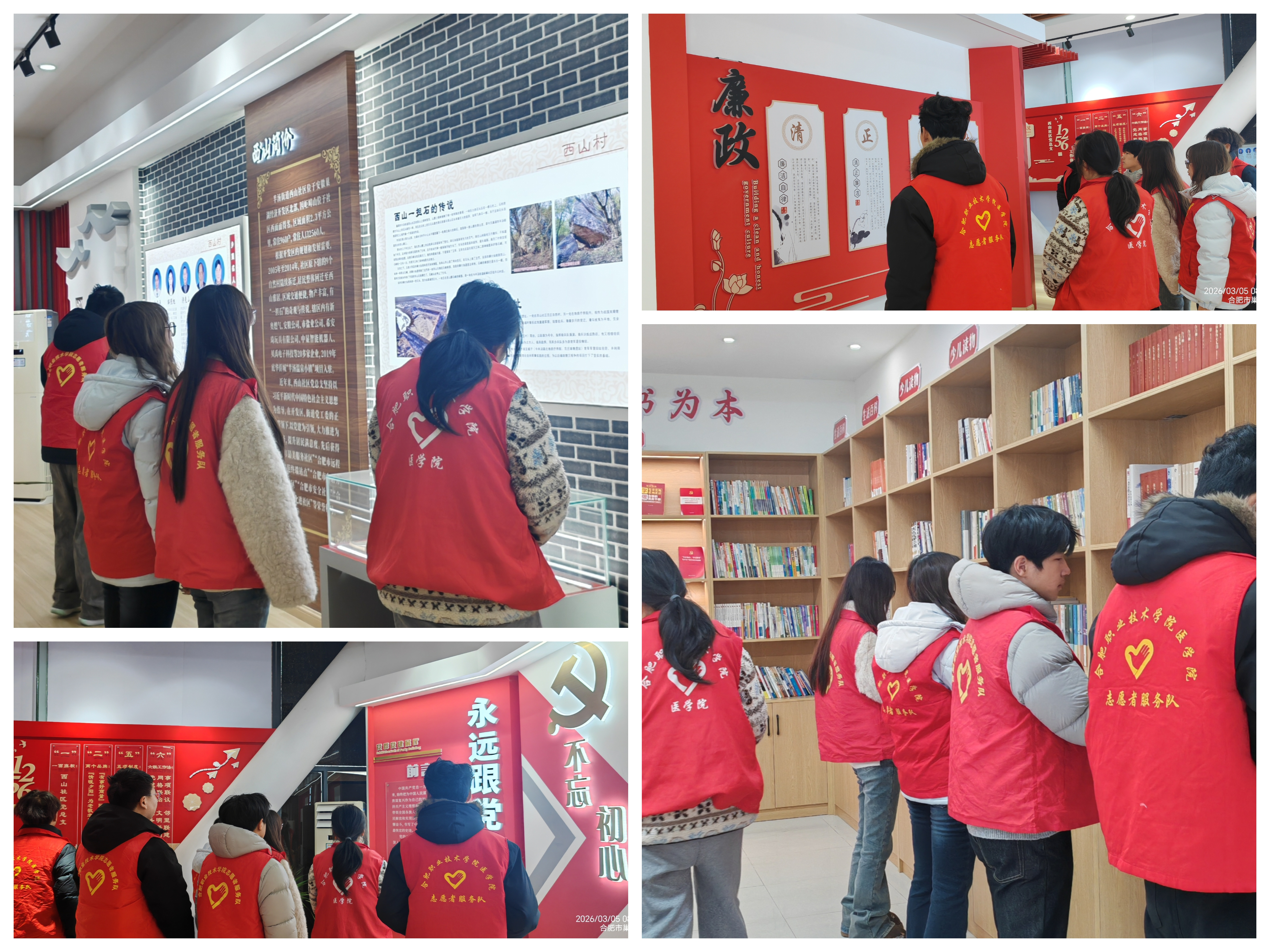 健康服务结束后,师生党员与社区工作人员一同走进社区红色教育阵地,依托西山社区丰富的红色资源,开展沉浸式实践教育。大家通过参观红色展陈、聆听革命故事、重温初心历程,深刻感悟革命先辈的崇高精神与使命担当,将红色教育与医者仁心、志愿服务精神相结合,进一步坚定青年学子“学医为民、服务基层”的理想信念。