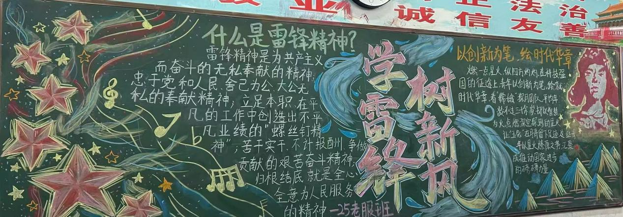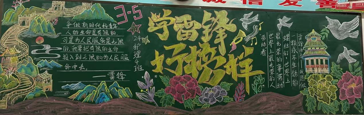 本次活动面向24级、25级全体在校班级,活动期间,各班级积极响应、精心筹备,以黑板为载体,将雷锋事迹、奉献精神与医学专业特色相结合,用笔墨勾勒初心,用色彩传递温暖,打造出一幅幅主题鲜明、构思新颖、富有感染力的作品,让雷锋精神在校园中可视化、常态化。