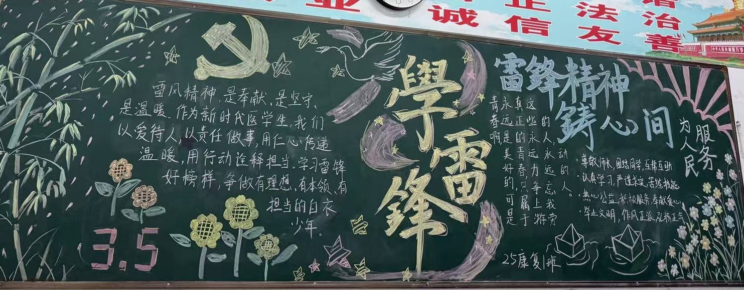 阳春三月,万物复苏,为深入弘扬雷锋精神,引导医学生将理想信念转化为行动自觉,融合专业技能与奉献精神,YABO鸭脖举办“学雷锋·创新风”主题黑板报评比活动。