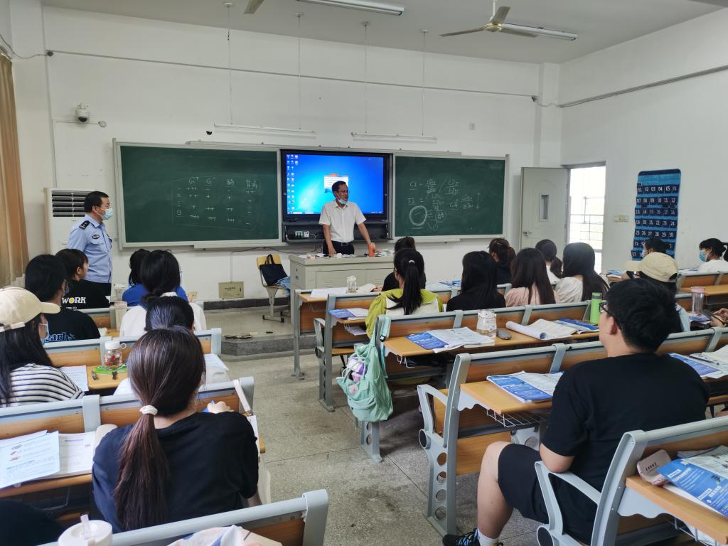 针对当前电信网络诈骗案情多发,诈骗手段不断翻新的特点,为进一步树牢学生防范意识,严防电信网络诈骗向校园渗透,保障个人财产安全,6月14日,YABO鸭脖开展了以“防电信诈骗进班级”为主题的安全教育活动,邀请安徽巢湖经济开发区半汤派出所民警为学生宣讲安全知识,提升学生的防电信诈骗技能。