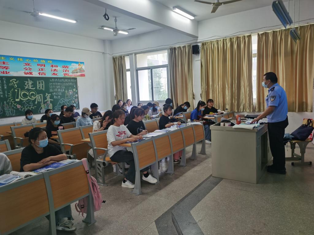 半汤派出所曹警官、校保卫处处长谭连生逐一向同学们讲解电信诈骗知识,对同学们进行安全教育。结合近期电信诈骗情况以及多发案件,向同学们介绍了犯罪分子的惯用手法、常见作案类型,并详细介绍了“冒充客服”“刷单返利”“冒充公检法”等犯罪分子常见作案手段及识别和防范技巧。曹警官根据自身多年的工作经验结合生活中真实具体的电信诈骗案例,通过以案说法的形式向学生宣传反诈骗知识,希望大家做到别贪、别信、别慌。活动中,派出所民警将一份份详实明了的反诈宣传单发放给同学,让同学们多看多学。