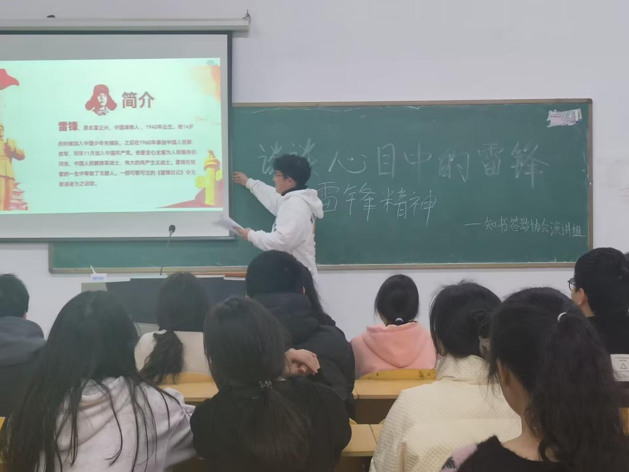 知书答影协会演讲组为学习雷锋精神,弘扬中华传统美德,践行社会主义荣辱观,组织开展了关于雷锋主题的演讲。他们用激昂的语调,真挚的情感来诉说着自己对雷锋深深的敬佩。活动结束时,社员们纷纷表示自己对雷锋精神的认知更加深刻,要将雷锋的故事传递下去。