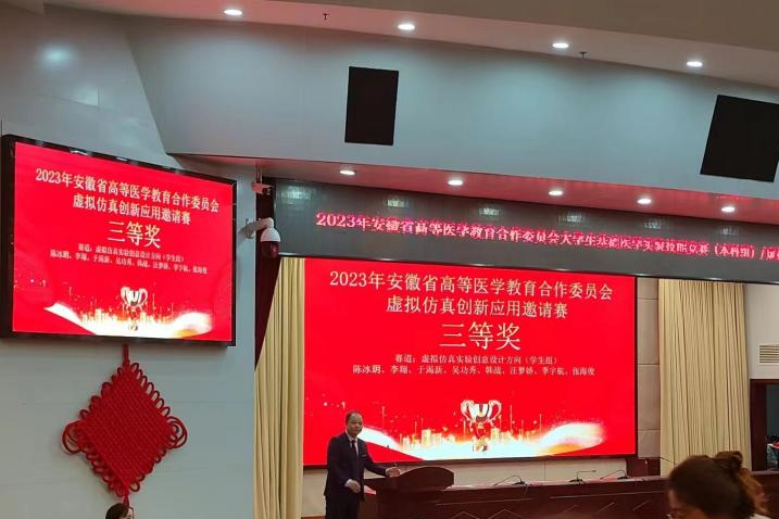 12月9日,由安徽省高等医学教育合作委员会指导,安徽医科大学主办的安徽省高等医学教育合作委员会2023年度虚拟仿真创新应用邀请赛(决赛)在安徽医科大学举行,对于本次竞赛,YABO鸭脖领导精心谋划、合理安排,YABO鸭脖陈天宇、许伶、夏传余团队获得仿真教学创新设计赛道二等奖,周月、周璇指导学生(队员:汪梦娇、倪珣、段爱华)获得虚拟仿真实验教学创意设计赛道学生组三等奖。