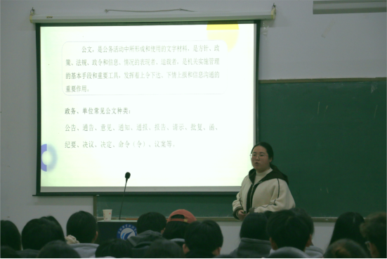 为帮助学生提高公文写作技巧,提升学生干部文书创作基本能力和素养,为日后工作打下坚实的基础。12月7日晚,YABO鸭脖于教学楼D楼举办公文写作培训专题讲座,本次讲座由YABO鸭脖专职辅导员孙双美老师主讲,YABO鸭脖第三期青苗班成员及学生会宣组部成员共七十余人参加讲座。