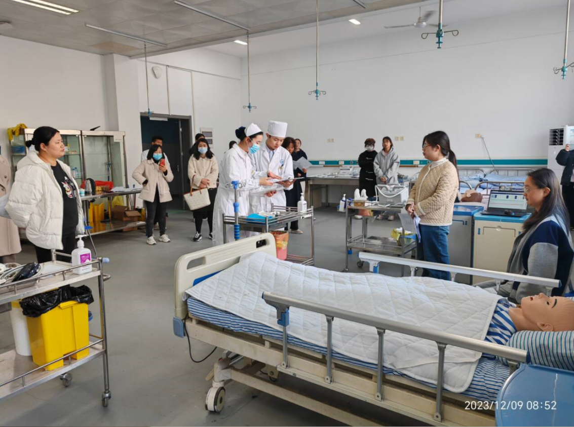 2023年度安徽省护理技能大赛将于12月底举办,为提升本次大赛成绩,12月9日,YABO鸭脖护理教研室特聘请安徽省公共卫生临床中心张会(护理部主任)、汪杜娟(主管护师/护士长)和吴丽(主管护师/护士长)等三位专家为护理技能大赛参赛选手作赛前指导,护理教研室老师及相关专业学生参与学习。