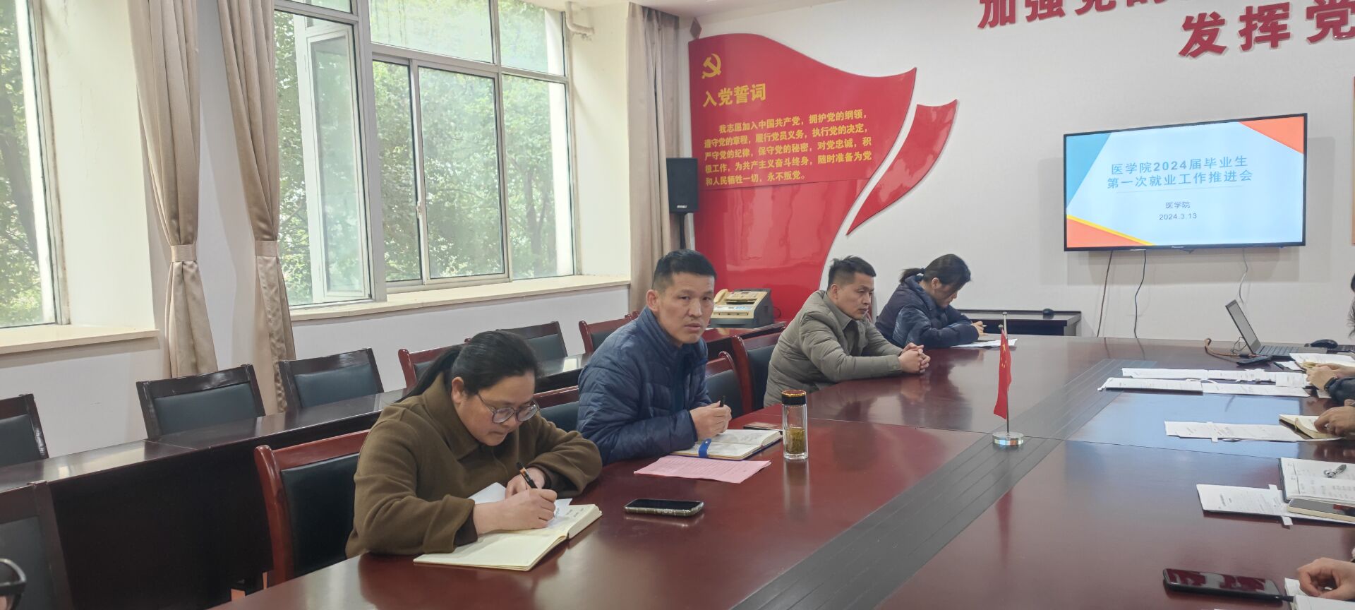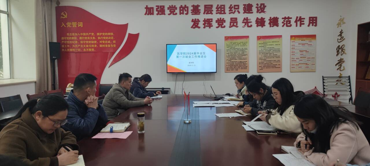 3月13日下午,YABO鸭脖在党员活动室召开2024届毕业生第一次就业工作推进会,医学院党总支副书记(主持工作)邹华兵、副书记梁春艳及全体2024届毕业班辅导员参加会议。