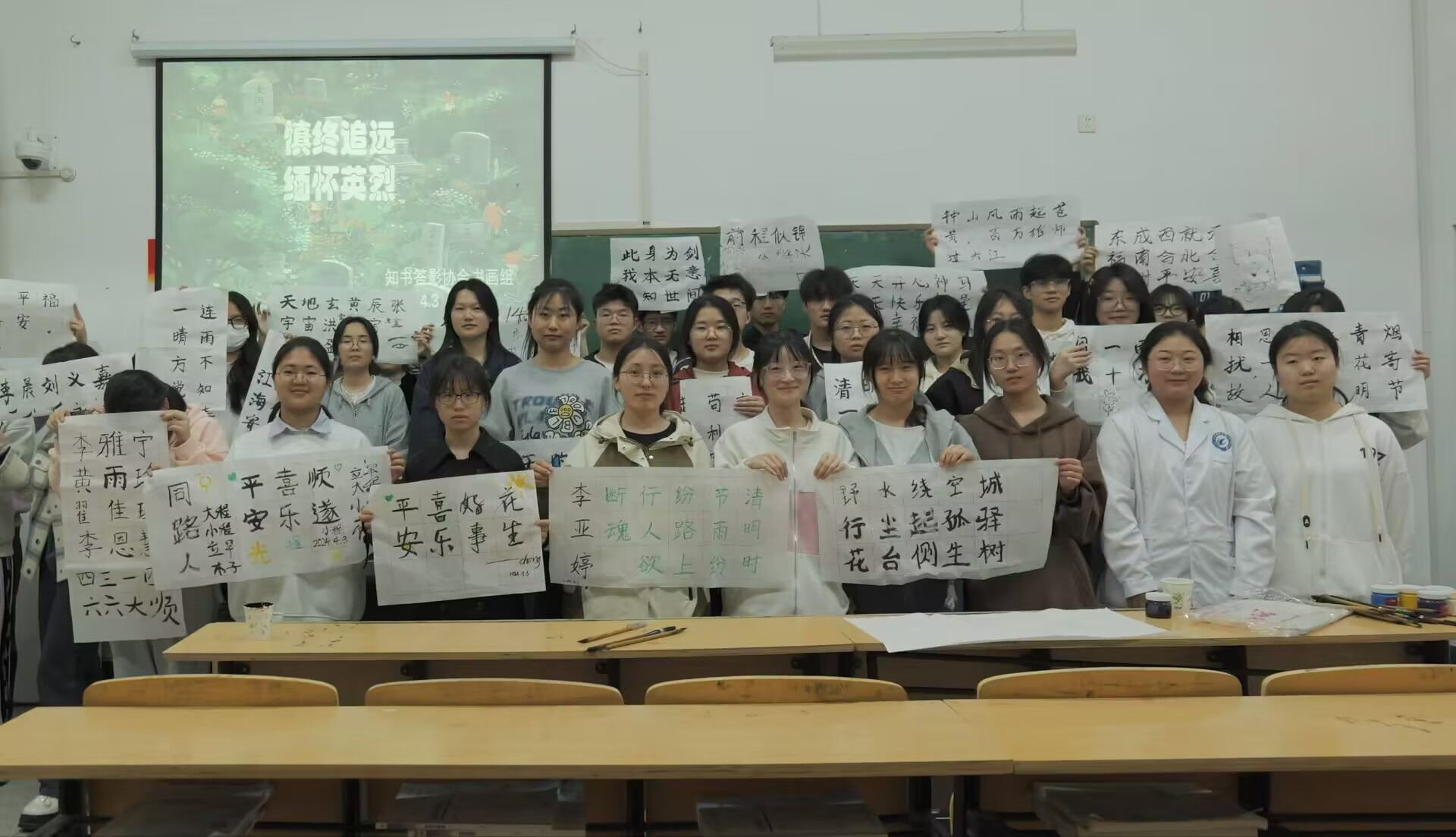 清明暮春里,先烈万古存,4月3日下午,YABO鸭脖知书答影协会的同学们在教学楼开展了“慎终追远,缅怀英烈”书法创作活动。同学们执起毛笔,写下与清明有关的诗句,在书写过程中,体会中国古代历史文化的厚重,同时缅怀革命先烈,厚植爱国情怀,感受“为有牺牲多壮志,敢教日月换新天”的奋勇与担当。墨香阵阵,同学们在留校的假期里共同感受清明特有的文化氛围。