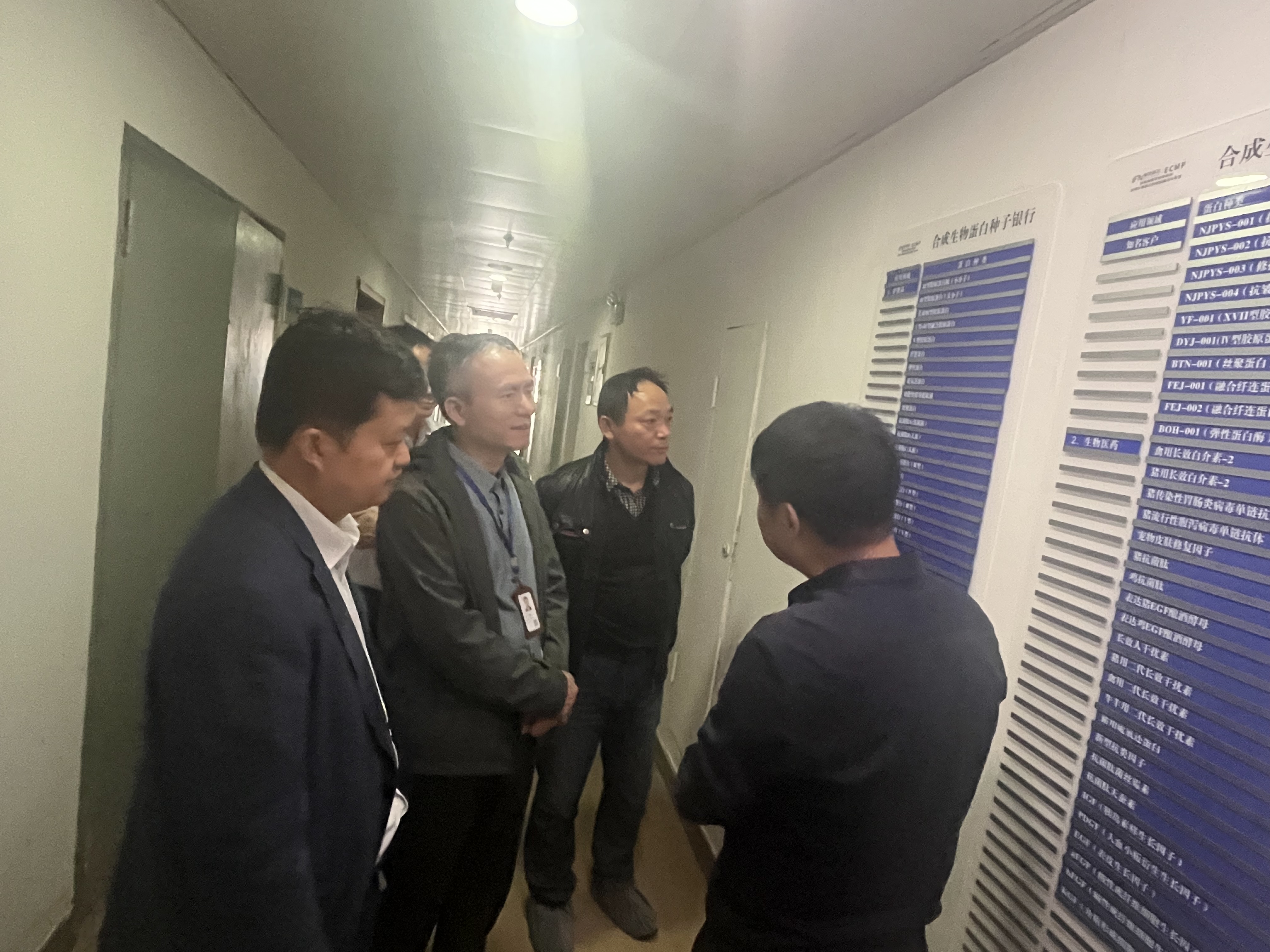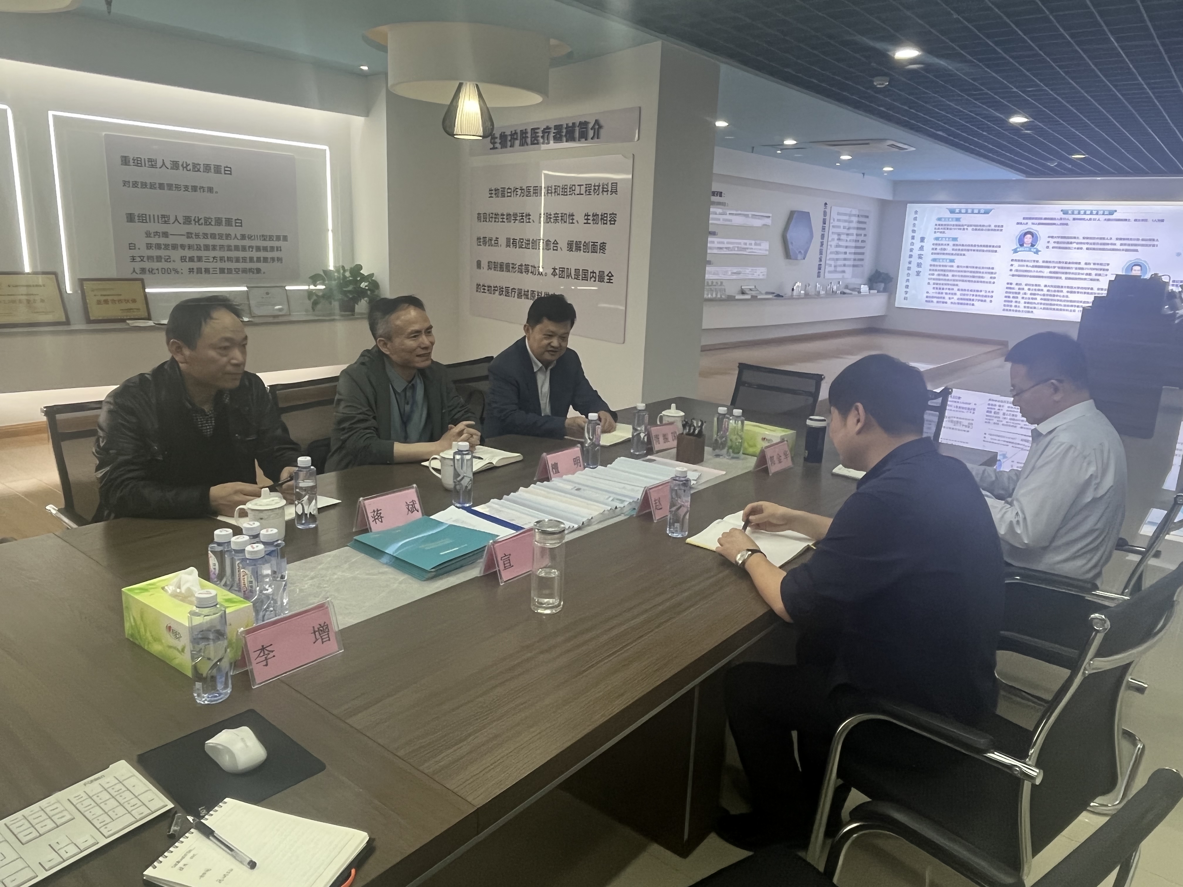 接着,檀明一行参观了英特菲尔的研发中试平台和“合成生物种子银行”。英特菲尔研发人员演示了重组人源化Ⅲ型胶原蛋白耐热稳定性试验,英特菲尔团队基于蛋白质工程技术和结构生物学,采用共表达、融合表达解决了胶原蛋白在体内羟基化、糖基化修饰过程,制备出长效稳定性的胶原蛋白(DSC检测变性温度可达100℃)。该项核心技术已成功申请发明专利并获得授权,同时该核心技术国外尚未攻破。