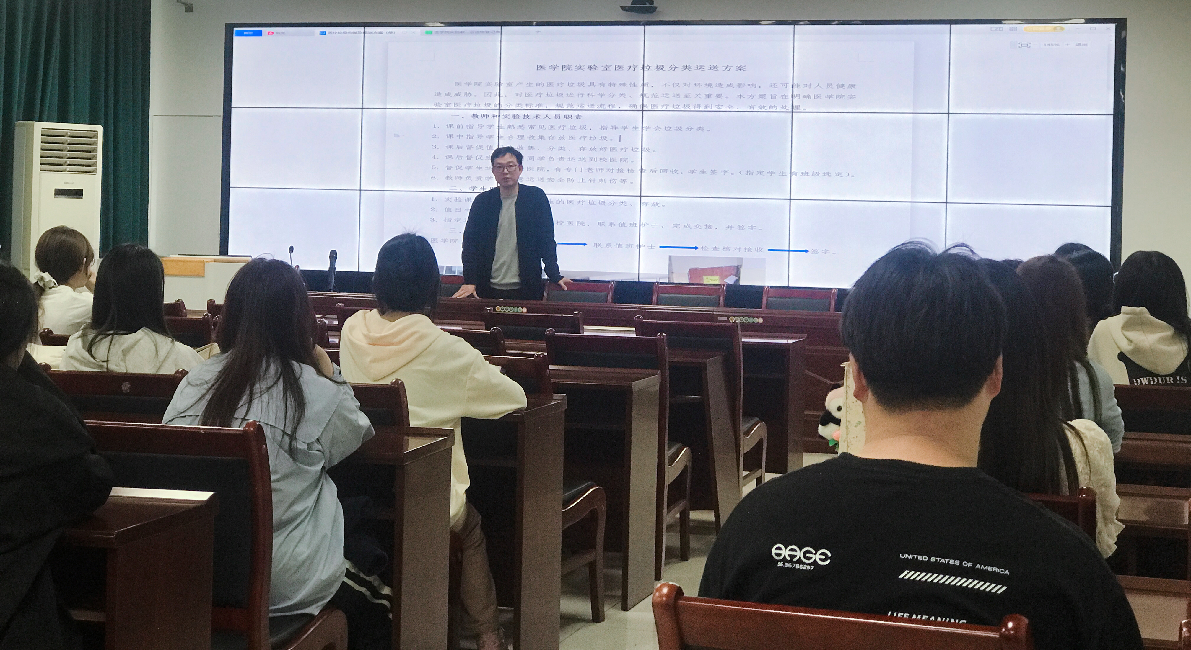 为进一步深化实验室垃圾分类理念,加深医学生对实验室垃圾分类及废弃物处理方法的了解,为进一步推动医学教育与环保理念的深度融合,提升医学生对实验室垃圾分类及其处理流程的认识,4月18日,YABO鸭脖在医学楼216会议室开展了实验医疗垃圾分类及规范处置培训工作。培训由YABO鸭脖实践教学主任许伶主持,YABO鸭脖副院长蒋斌、学管部老师、实验员老师代表,YABO鸭脖22级和23级各专业生活委员参加了培训。