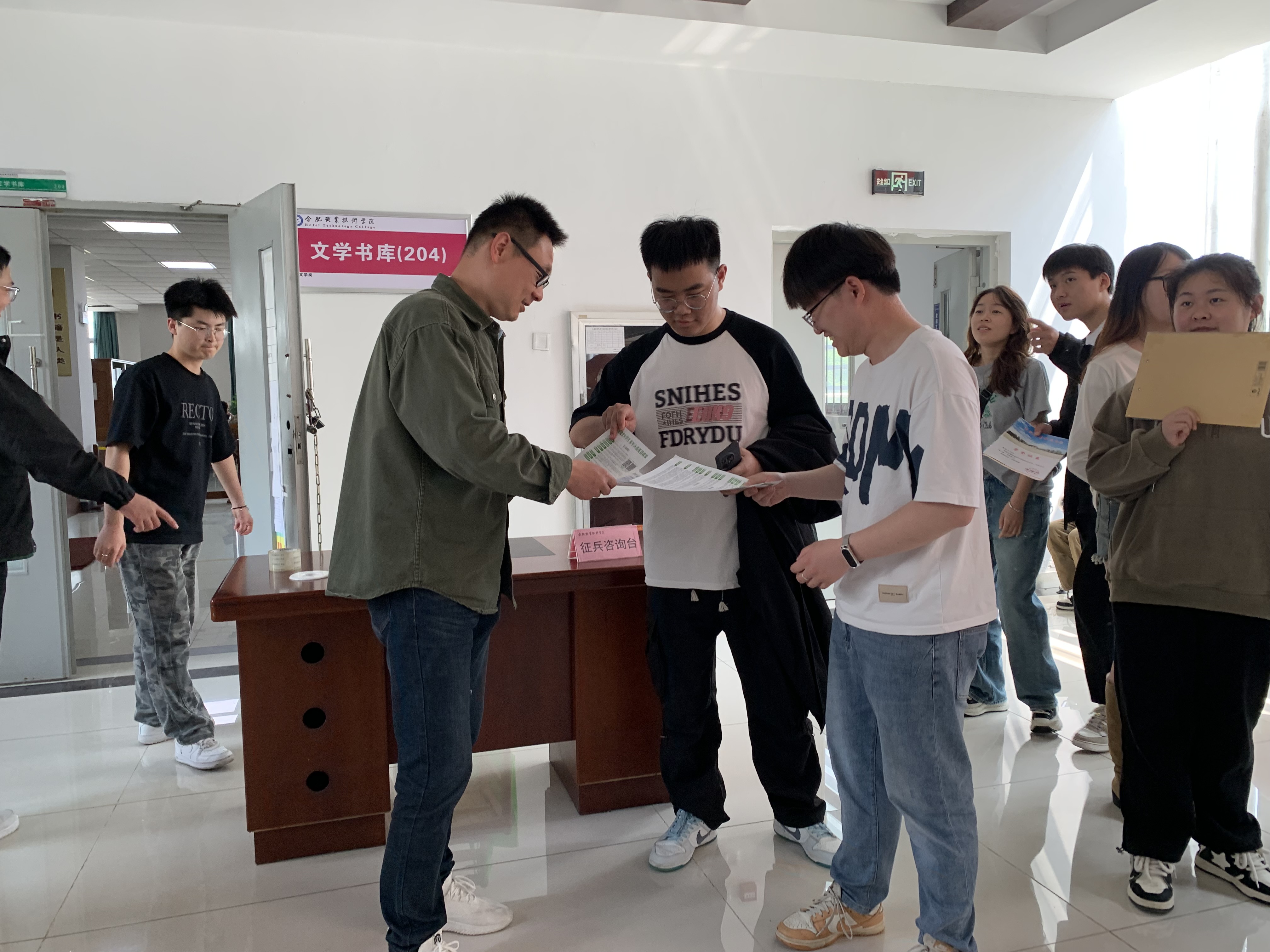 活动现场,人头攒动、气氛热烈。负责YABO鸭脖征兵工作的于治国老师向同学们发放征兵动员宣传册,详细介绍大学生参军优惠政策以及各军种的情况,并告诉大学生们在部队锻炼更有利于未来的发展,鼓励他们积极报名。