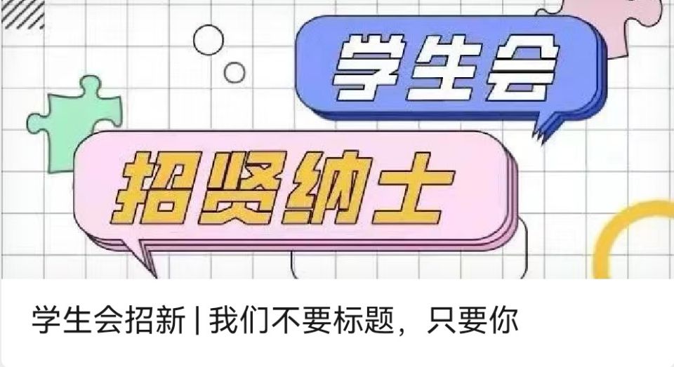 参与此次纳新的部门有:宣组部、学习部、文艺部、体育部、权益部和办公室部。本次招新中,各部门进行前期招新活动策划、线上宣传等一系列的工作后,吸引了大批具有青春气息、乐于奉献的优秀新生。