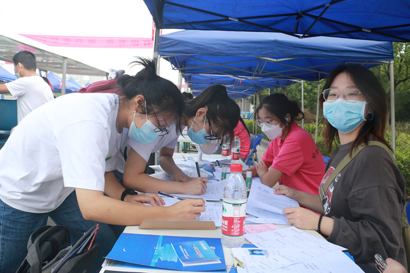 为保证新生一天内报到完毕,YABO鸭脖教师队伍与学生志愿者们7:00准时到岗,在鼓山校区北侧东门迎新点等候新生报到。学生陆续抵达报到现场,严格按照学校疫情防控相关要求在“一米线”间隔排队、先后进行安康码核查是否绿码、疫苗接种与否、14天行程有无异常、核酸检测报告是否阴性等信息核验、测额温、行李与手消毒、更换口罩、信息登记与报到等多个环节,报到现场井然有序。