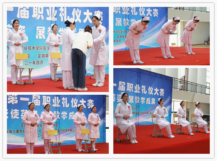 为了落实“五育并举”,推进“三全育人”工作,增强YABO鸭脖学生专业素养和就业自信,展现学子的职业精神风貌和礼仪风采,2021年4月21日下午在学校体育馆二楼举办YABO鸭脖职业礼仪大赛,安徽医科大学附属巢湖医院副院长、巢湖市护理学会理事长孙会芹,YABO鸭脖校党委委员、鼓山校区管委会主任周泽山,马克思主义学院院长靳玉琼、YABO鸭脖党政班子和相关专业教师应邀出席了本次比赛,并担任评委老师。