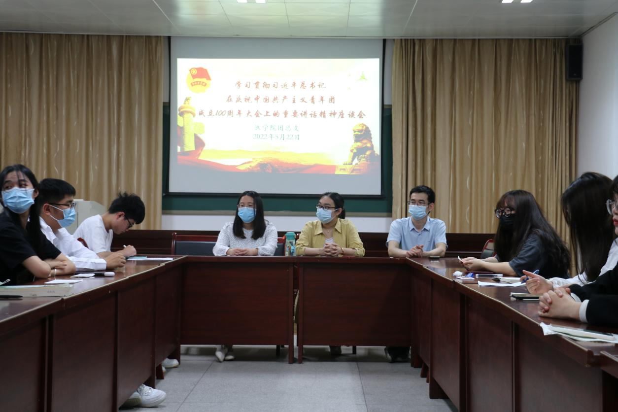 为引导学生深刻学习共青团百年历史,牢记坚定不移跟党走,为党和人民奋斗的初心使命,激发青年学生树立远大理想,勇担时代重任的革命精神和爱国情怀,YABO鸭脖团总支于5月22日晚在护理北楼大会议室举行了学习习近平总书记在庆祝中国共产主义青年团成立100周年大会上的重要讲话精神座谈会。会议由YABO鸭脖团总支书记刘惠主持,YABO鸭脖学管孔磊和孙双美老师以及各班级团支部书记参加了此次会议。