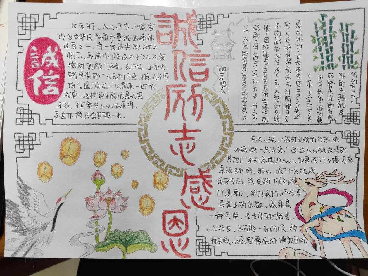 活动得到了各班级的积极响应,同学们从不同角度探讨诚信、励志或感恩主题,表达对国家、社会、学校给予大学生经济资助、教育指导、文化帮助等方面的感恩之情。同时也表达出励志认真学习,将来为中国特色社会主义建设做出卓越贡献。