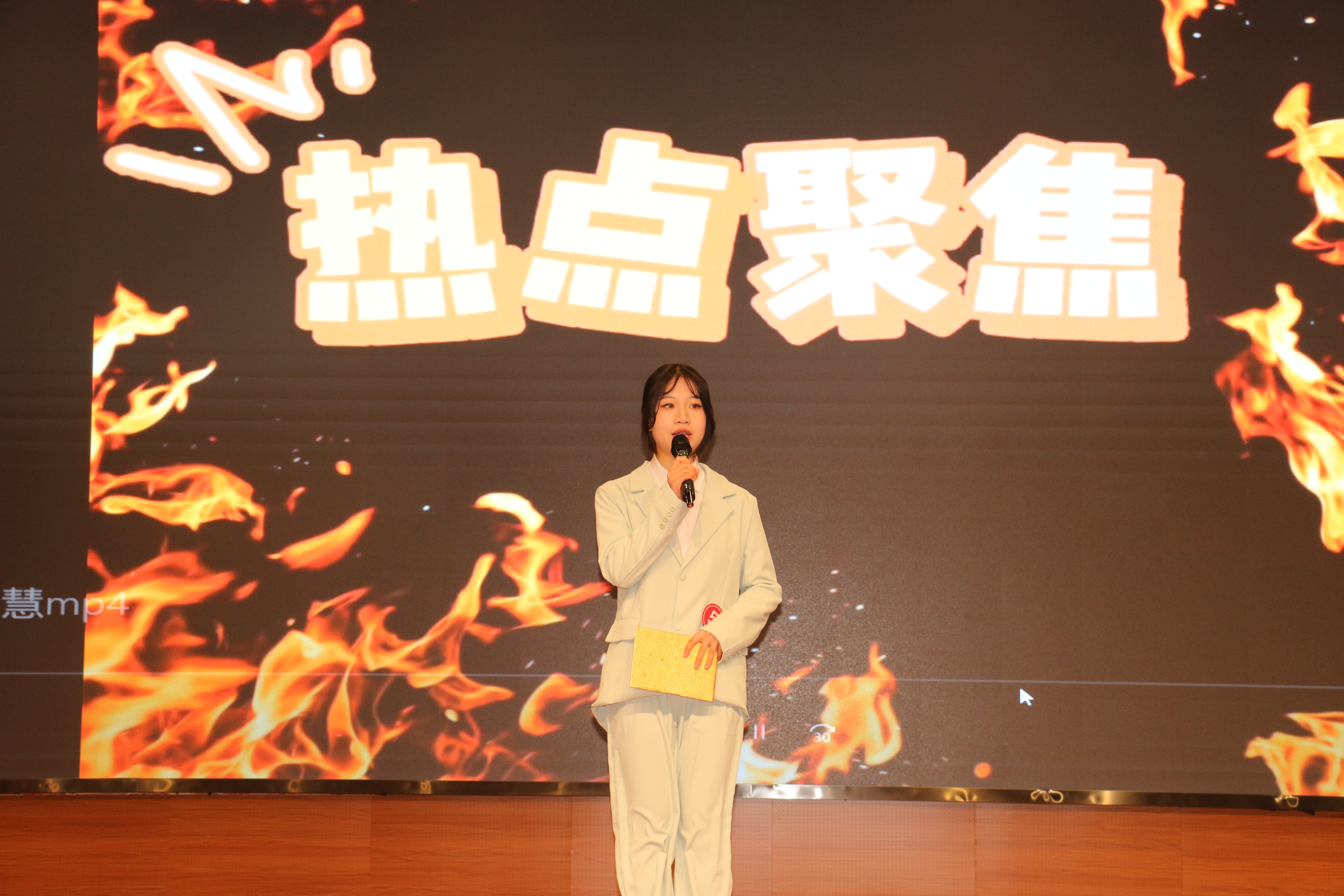 经过初期层层选拔,最终共10位选手进入决赛。决赛分为模拟主持以及才艺展示两个环节。在模拟主持环节中,选手们总结初赛经验,选择最能展现自己主持功力的节目形式,主持过程完整流畅,语言表达流利清晰,不仅展现了自己出众的主持能力,还表现出对主持和表达的无限热爱。在才艺展示环节,选手们精彩的表演更是让观众连连称赞。整个大礼堂都散发着语言的魅力,飞扬着自信的风采,洋溢着青春的活力。他们在舞台上尽情地展示自己,创造出了一幅幅声色兼美的靓丽风景。