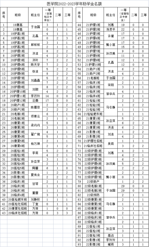 附:《2022-2023学年YABO鸭脖国家助学金名额分配表》