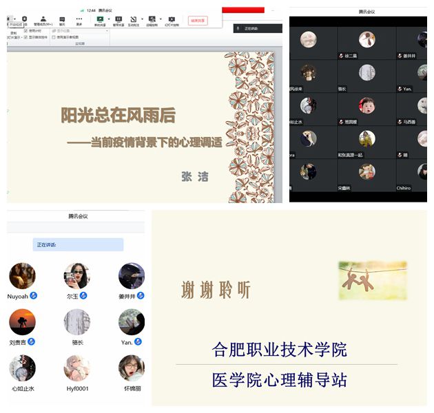 讲座主要结合当前病毒与我们共存的形势下,如何用理智的心态看待不确定性带给我们的焦虑、不安、恐慌等情绪。认识到负面情绪的本质是对压力的应激反应机制,积极心态才是一种理性选择。并引导同学们思考怎样将消极的应激变为积极的生活策略,拒绝灾难化思维,面对可能的恐慌,尝试拥抱失控感,用积极心理替代、转移、升华消极体验。