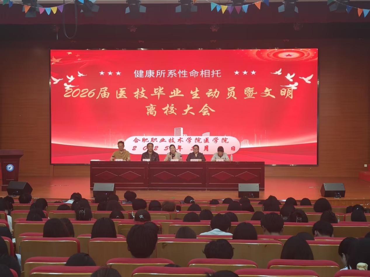 202557日下午,YABO鸭脖在大学生活动中心隆重举行“健康所系性命相托”2026届医技毕业生实习动员暨文明离校大会。YABO鸭脖党政领导班子、辅导员代表及400余名实习生参会。大会以“技术精进+职业敬畏”为主线,为即将奔赴50余家实习单位医技学子筑牢“幕后守护者”的使命担当。会议由党总支副书记梁春艳主持。