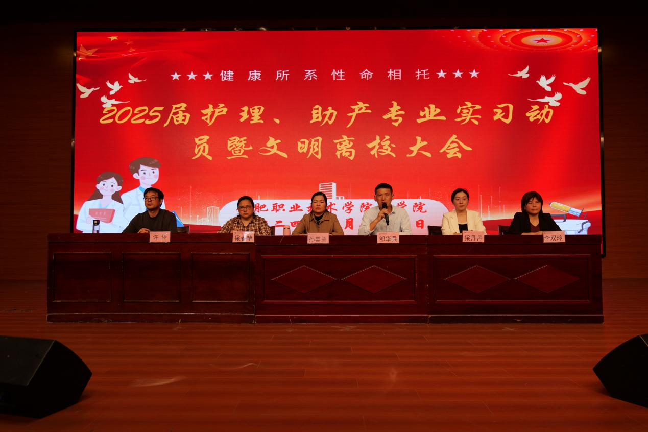 为进一步做好2025届毕业生顶岗实习工作,推进实习工作的顺利开展,2024年4月24日下午,在学校大学生活动中心举办了护理、助产专业实习动员暨文明离校大会。