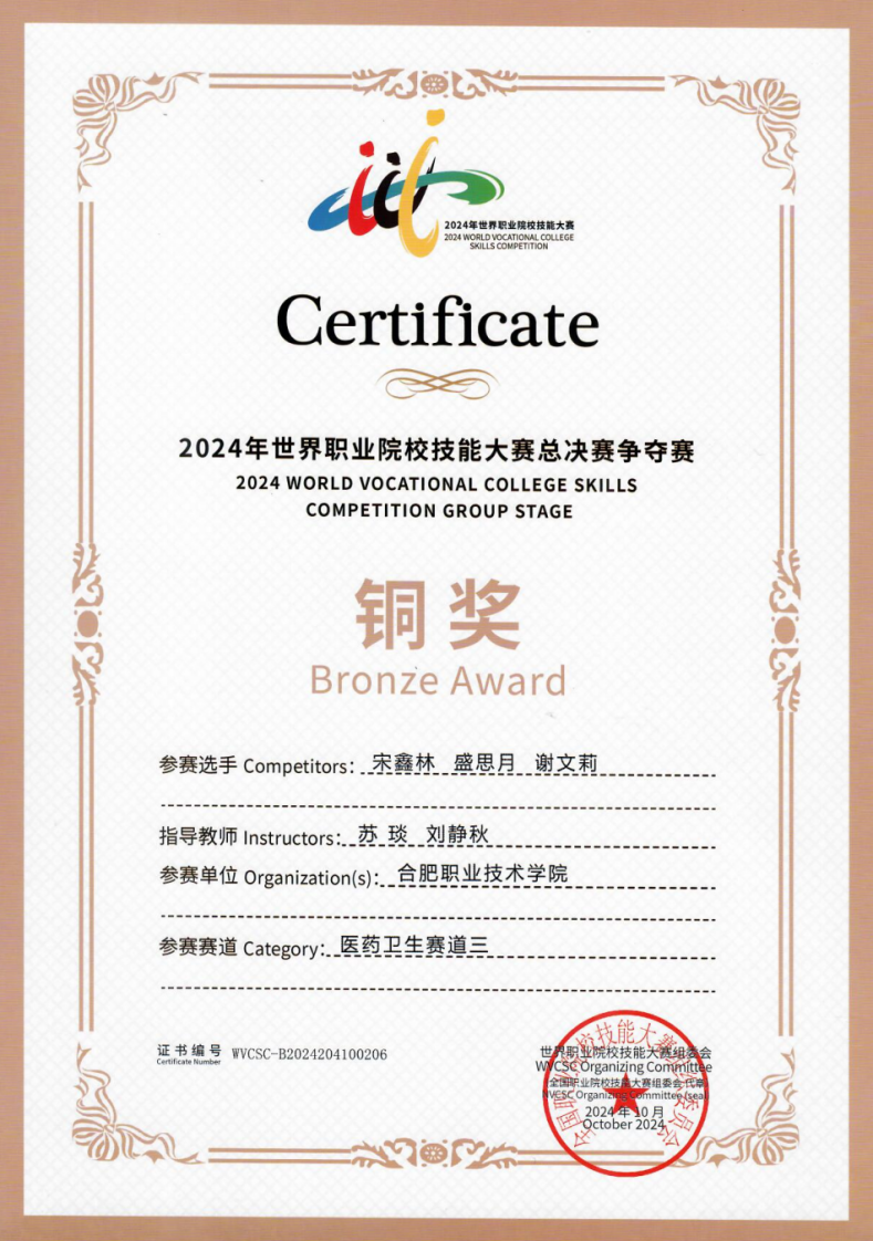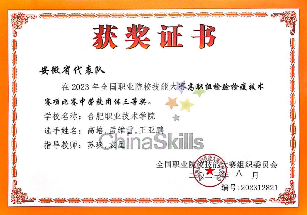 医学检验技术专业是安徽省首批高职特色专业、中央财政支持高等职业学校提升专业服务产业发展能力专业、安徽省卓越技能型医学检验技术人才培养专业、安徽省高水平高职专业。实施“校企融合、学训交互、能力递进”人才培养(2+1模式)、院校双主体联合“工学结合”人才培养(1+1+1模式)。在学生技能大赛方面获省级以上特等奖1项、一等奖2项、二等奖3项、三等奖16项;学生创新创业大赛省赛金银奖各1项、国家级创新创业大赛二等奖1项;2023年获全国职业院校技能大赛检验检疫技术赛项三等奖1项、安徽省职业院校技能大赛检验检疫技术赛项一等奖2项。2024年获世界职业院校技能大赛检验检疫技术赛项1项、安徽省职业院校技能大赛检验检疫技术赛项一等奖2项。
